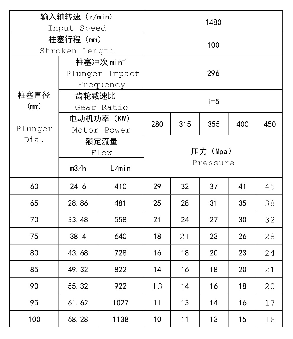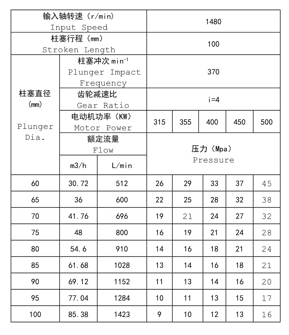 The end of fluid of the pump is designed in the form of amphitheatre valve group with large fluid flow. It has the properties of high transmission, low noises, stable operation, small size, balanced and reliable transmission, low friction coefficient, high lubrication, low temperature rising at power end, long-time continuous operation, etc. According to different parameter requirements, different stuffing box can be used. It is unnecessary to dissemble pump head when changing plunger of filling material to make sealed. It is very convenient and save time. The max.crankshaft thrust force is 125KN.